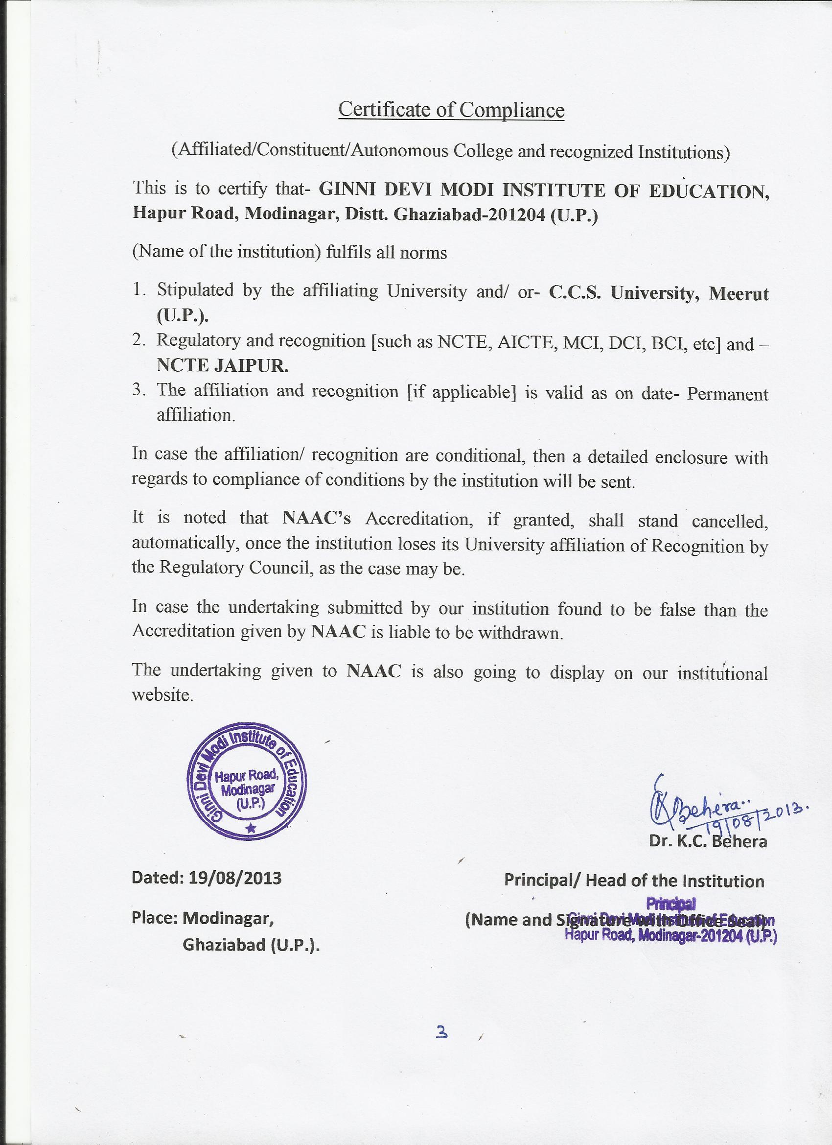 The Ginni Devi Modi Institute of Education was established in the year 2005 with a mission to produce trained, energetic, competent, professional, confident, skilled teachers with positive attitude, high values, commitment & dedication to meet the growing challenges of this globalized world. Our college was successful in establishing a B.Ed. degree college for women at Modinagar to cater for the in escapable need of the higher education for the girls not only of modinagar but also of different cities, within a short span of time Ginni Devi Modi Institute of Education is being hailed as one of the upcoming reputed B.Ed. College in U.P.